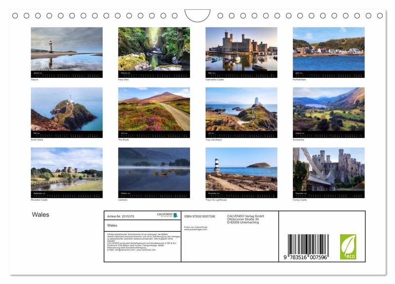 QUALITÄT - Hochwertiger Fotokalender mit 12 wunderschönen Motiven auf lichtbeständigem Bilderdruckpapier, robuste Spiralbindung mit Aufhängebügel.NACHHALTIG - deutliche Abfallreduzierung durch bedarfsgerechte Einzelstückfertigung, umweltfreundliches FSC-zertifiziertes Papier, Produktion in Deutschland, klimabewusste Logistik.PERFEKTES GESCHENK - Kalender für Freunde und Familie, für Kinder und Erwachsene, jung und alt, zu Weihnachten, Geburtstag oder zwischendurch.VIELFALT - Bildkalender in verschiedenen Formaten, z.B. DIN A5, DIN A4, DIN A3 sowie DIN A2. Ob Naturmotiv, Gemälde oder Fotos, ideal für ein persönliches Wohlfühlambiente.Eine fotografische Reise in das alte keltische Königreich Wales, das Land der Burgen und Mythen. von Autor(in): Joana Kruse