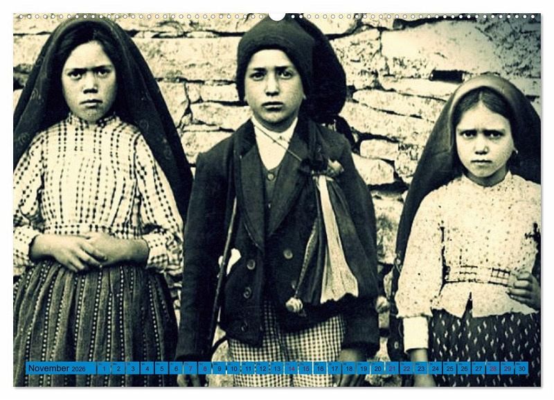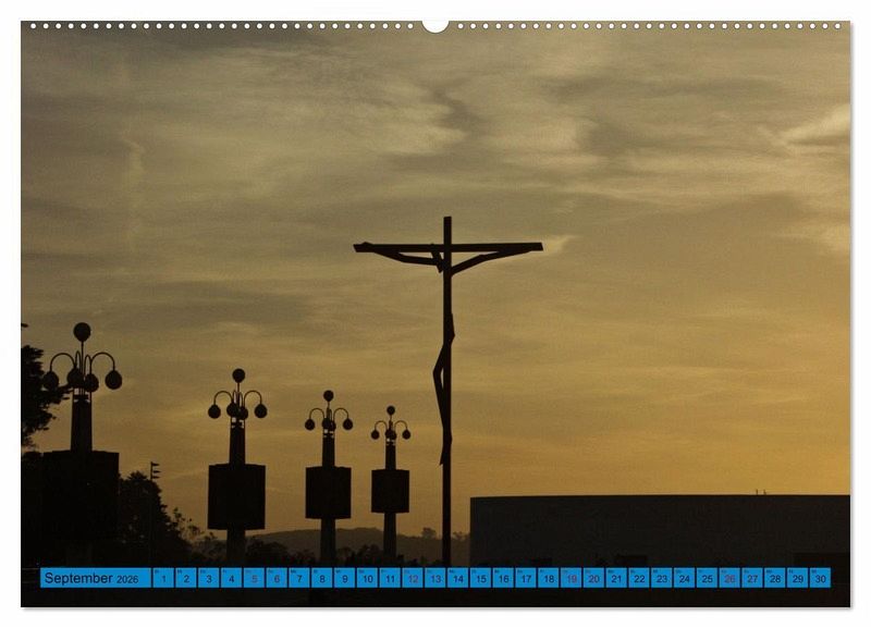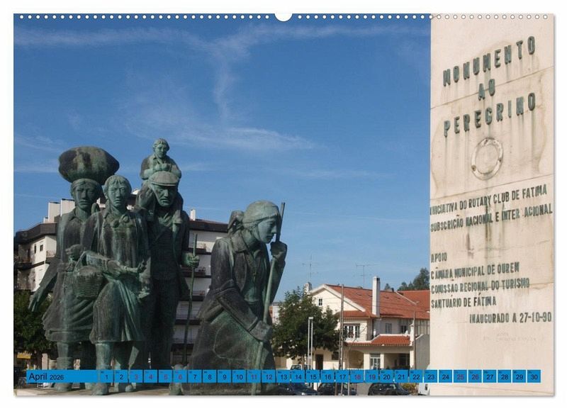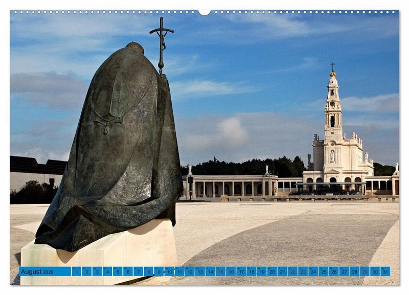 Ein Kalender aus der Serie Religion und Reisen. Fatima, ein bekannter Wallfahrtsort im Centro von Portugal. Drei Hirtenkinder sahen 1907 eine Marienerscheinung. Dieses Ereignis veränderte den Ort in ein modernes religiöses Zentrum . Wir haben hier einen interessanten Kalender geschaffen. Ein Mix aus Architektur, Geschichte und Religion