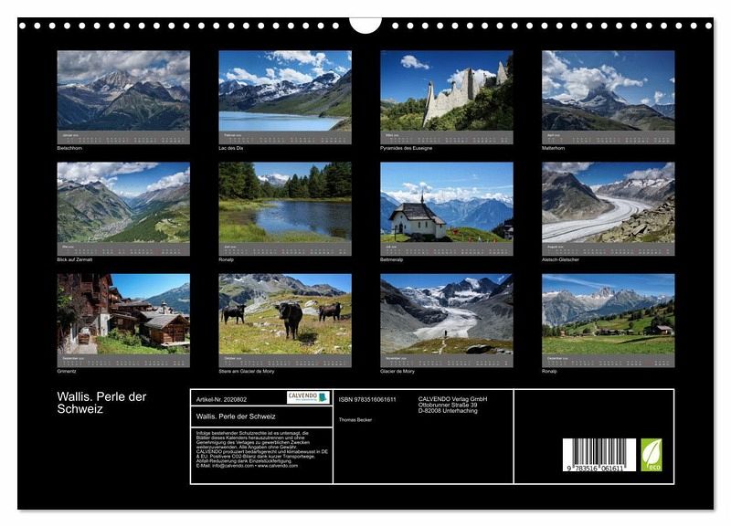 QUALITÄT - Hochwertiger Fotokalender mit 12 wunderschönen Motiven auf lichtbeständigem Bilderdruckpapier, robuste Spiralbindung mit Aufhängebügel.NACHHALTIG - deutliche Abfallreduzierung durch bedarfsgerechte Einzelstückfertigung, umweltfreundliches FSC-zertifiziertes Papier, Produktion in Deutschland, klimabewusste Logistik.PERFEKTES GESCHENK - Kalender für Freunde und Familie, für Kinder und Erwachsene, jung und alt, zu Weihnachten, Geburtstag oder zwischendurch.VIELFALT - Bildkalender in verschiedenen Formaten, z.B. DIN A5, DIN A4, DIN A3 sowie DIN A2. Ob Naturmotiv, Gemälde oder Fotos, ideal für ein persönliches Wohlfühlambiente.Wundervolle Bergwelt des Wallis von Autor(in): Thomas Becker