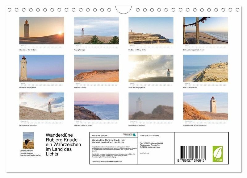 QUALITÄT - Hochwertiger Fotokalender mit 12 wunderschönen Motiven auf lichtbeständigem Bilderdruckpapier, robuste Spiralbindung mit Aufhängebügel.NACHHALTIG - deutliche Abfallreduzierung durch bedarfsgerechte Einzelstückfertigung, umweltfreundliches FSC-zertifiziertes Papier, Produktion in Deutschland, klimabewusste Logistik.PERFEKTES GESCHENK - Kalender für Freunde und Familie, für Kinder und Erwachsene, jung und alt, zu Weihnachten, Geburtstag oder zwischendurch.PERFEKTES GESCHENK - Kalender für Freunde und Familie, für Erwachsene, zu Weihnachten, Geburtstag oder zwischendurch.Beeindruckende Fotos der bekannten Wanderdüne Rubjerg Knude in Nordjütland von Autor(in): Lars Nullmeyer