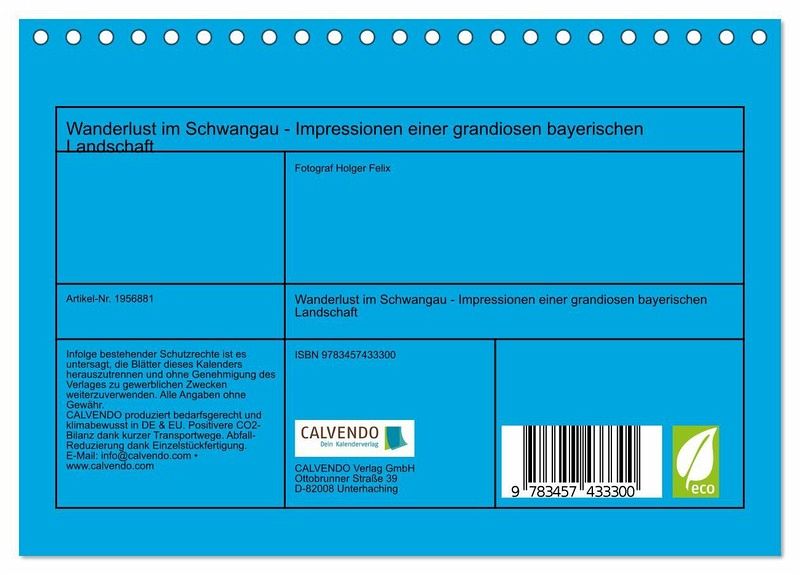 QUALITÄT - Hochwertiger Fotokalender mit 12 wunderschönen Motiven auf lichtbeständigem Bilderdruckpapier, robuste Spiralbindung.NACHHALTIG - deutliche Abfallreduzierung durch bedarfsgerechte Einzelstückfertigung, umweltfreundliches FSC-zertifiziertes Papier, Produktion in Deutschland, klimabewusste Logistik.PERFEKTES GESCHENK - Kalender für Freunde und Familie, für Kinder und Erwachsene, jung und alt, zu Weihnachten, Geburtstag oder zwischendurch.VIELFALT - Bildkalender in verschiedenen Formaten, z.B. DIN A5, DIN A4, DIN A3 sowie DIN A2. Ob Naturmotiv, Gemälde oder Fotos, ideal für ein persönliches Wohlfühlambiente.Verliebt in eine vielfältige Landschaft des Schwangau von Autor(in): Holger Felix