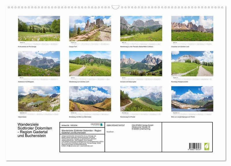 QUALITÄT - Hochwertiger Fotokalender mit 12 wunderschönen Motiven auf lichtbeständigem Bilderdruckpapier, robuste Spiralbindung mit Aufhängebügel.NACHHALTIG - deutliche Abfallreduzierung durch bedarfsgerechte Einzelstückfertigung, umweltfreundliches FSC-zertifiziertes Papier, Produktion in Deutschland, klimabewusste Logistik.PERFEKTES GESCHENK - Kalender für Freunde und Familie, für Kinder und Erwachsene, jung und alt, zu Weihnachten, Geburtstag oder zwischendurch.VIELFALT - Bildkalender in verschiedenen Formaten, z.B. DIN A5, DIN A4, DIN A3 sowie DIN A2. Ob Naturmotiv, Gemälde oder Fotos, ideal für ein persönliches Wohlfühlambiente.Ausflugsziele in grandioser Alpenlandschaft der Dolomiten von Autor(in): SusaZoom