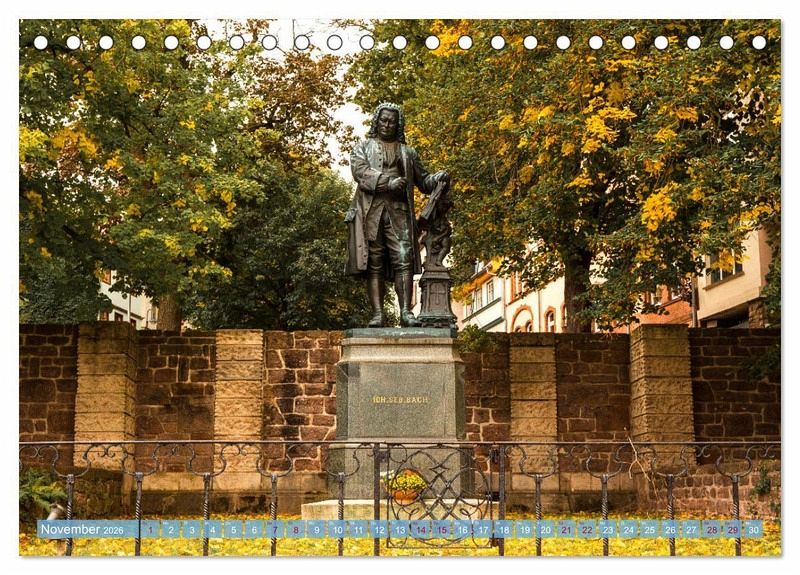 Eisenach, bekannt als Wartburgstadt, liegt in Thüringen und ist reich an Geschichte und Kultur. Die Wartburg, ein UNESCO-Welterbe, ist berühmt als Zufluchtsort Martin Luthers und für die Übersetzung des Neuen Testaments. Johann Sebastian Bach wurde hier geboren, und das Bachhaus erinnert an sein Leben und Werk. Die malerische Drachenschlucht und das Lutherhaus sind weitere Highlights der Stadt. Eisenach verbindet historische Bedeutung mit natürlicher Schönheit. Drachenkind-fotografie fotografierte auf ihrer Fahrradtour entlang der Städtekette durch Thüringen, diesen Regional-Kalender.