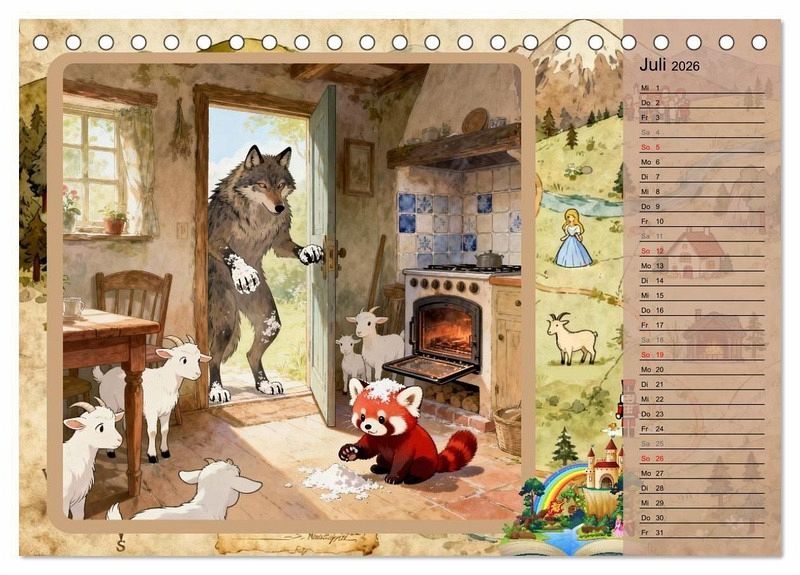 Entdecke den einzigartigen Kalender "Was macht der denn da? - Wie kommt ein Roter Panda in unsere Märchen hinein?"! Jeden Monat reist ein niedlicher roter Panda durch die bekannte deutsche Märchenwelt und sorgt für witzige Überraschungen. Genieße liebevoll im Anime-Stil KI-generierte Illustrationen, die 12 klassische Szenen neu und phantasievoll zeigen. Perfekt für Märchenfans, Familien und Kinder, die das Besondere lieben - und für alle, die ein Lächeln auf dem Schreibtisch brauchen! Lass dich verzaubern und finde den Panda in jedem Bild. Das ideale Geschenk für Groß und Klein!