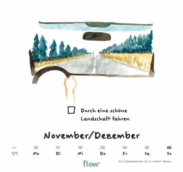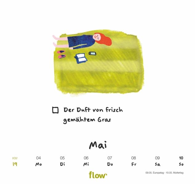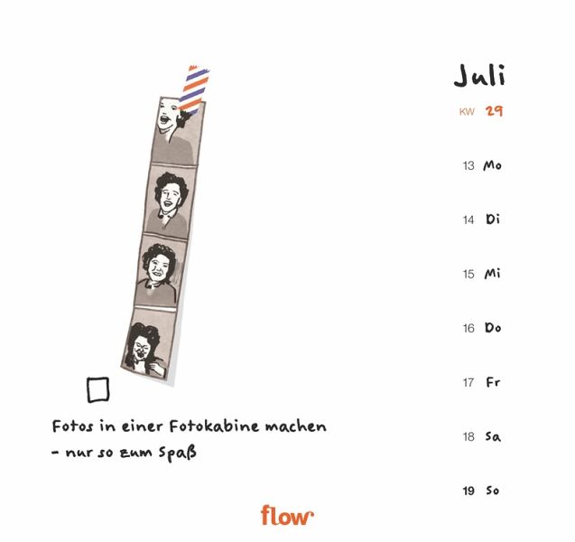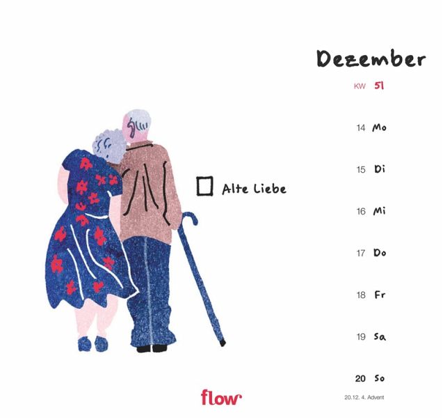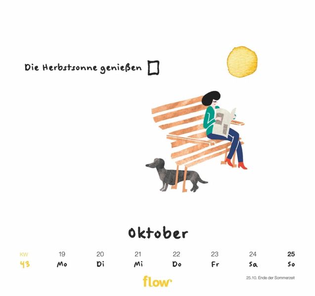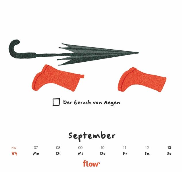 Ein liebevoll gestalteter Wochenkalender von Flow, der die stillen, kleinen Glücksmomente des Alltags in den Mittelpunkt stellt. Mit 53 Illustrationen erinnert er daran, wie wertvoll die unscheinbaren Augenblicke sind, die unser Leben reicher machen.
