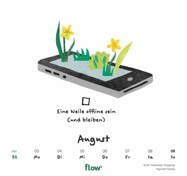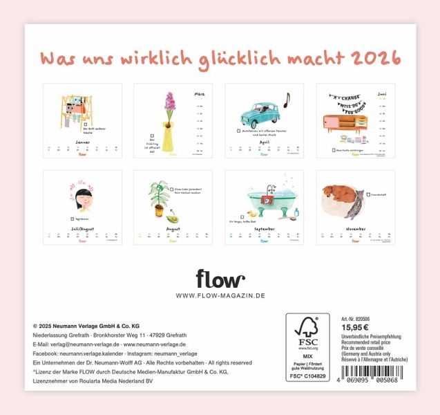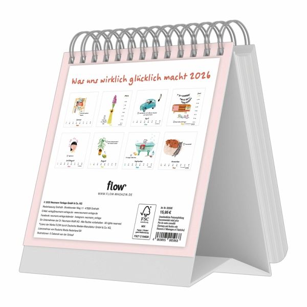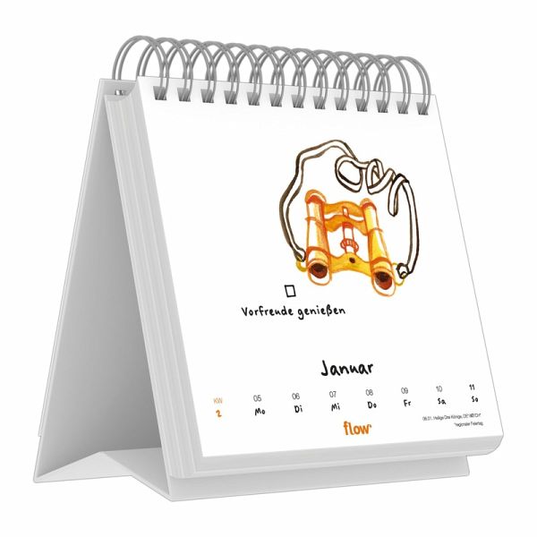 Der Flow Kalender Was uns wirklich glücklich macht 2026 ist ein inspirierender Begleiter durch das Jahr ein Tischkalender, der Woche für Woche kleine Glücksmomente schenkt und zum Innehalten einlädt.