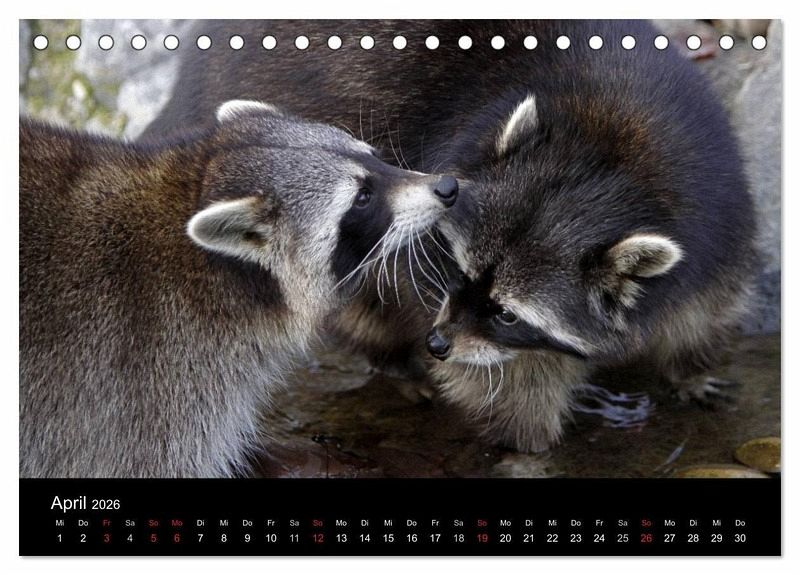 Lassen Sie sich von den kleinen putzigen Waschbären durch das Jahr begleiten und erfreuen Sie sich jeden Monat an einem neuen maskierten Räuber.