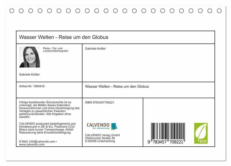 QUALITÄT - Hochwertiger Fotokalender mit 12 wunderschönen Motiven auf lichtbeständigem Bilderdruckpapier, robuste Spiralbindung.NACHHALTIG - deutliche Abfallreduzierung durch bedarfsgerechte Einzelstückfertigung, umweltfreundliches FSC-zertifiziertes Papier, Produktion in Deutschland, klimabewusste Logistik.PERFEKTES GESCHENK - Kalender für Freunde und Familie, für Kinder und Erwachsene, jung und alt, zu Weihnachten, Geburtstag oder zwischendurch.VIELFALT- Bildkalender in verschiedenen Formaten, z.B. DIN A5, DIN A4, DIN A3 sowie DIN A2. Ob Naturmotiv, Gemälde oder Fotos, ideal für ein persönliches Wohlfühlambiente.Atemberaubende Reisefotografien aus aller Welt lassen die Erscheinungen des Wassers in all seinen Facetten leuchten. von Autor(in): Gabriele Kottler