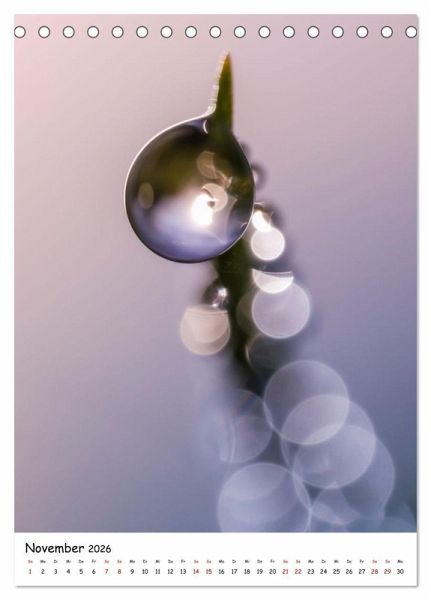 Dieser Kalender zeigt die magische Schönheit der Tautropfen in all ihren Formen - vom ersten Frost des Winters bis zu den funkelnden Perlen im Morgentau des Sommers.