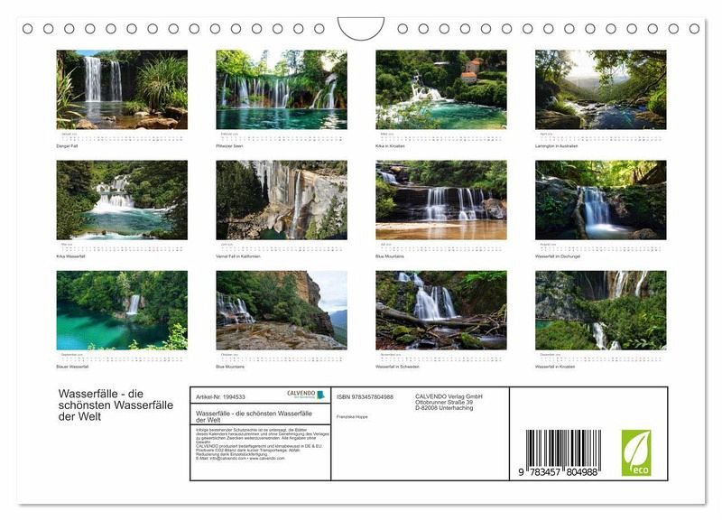 Wasserfälle sind beeindruckend, spektakulär und wunderschön. Dieser Kalender entführt sie zu den zauberhaftesten Wasserfällen aus allen Ecken der Welt.