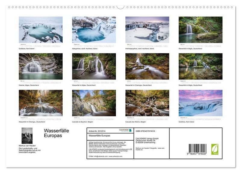 PREMIUM-LINIE - Brillanter Fotokalender mit 12 wunderschönen Motiven, Kunstdruck in Hochglanz in Museumsqualität.QUALITÄT - edle Materialien, stabile Rückwand mit 2 innovativen Einstecktaschen für eine optimale Präsentation an der Wand.NACHHALTIG - deutliche Abfallreduzierung durch bedarfsgerechte Einzelstückfertigung, umweltfreundliches FSC-zertifiziertes Papier, Produktion in Deutschland, klimabewusste Logistik.PERFEKTES GESCHENK - Kalender für Freunde und Familie, für Kinder und Erwachsene, jung und alt, zu Weihnachten, Geburtstag oder zwischendurch.Eine kleine Auswahl europäischer Wasserfälle von Autor(in): Markus van Hauten