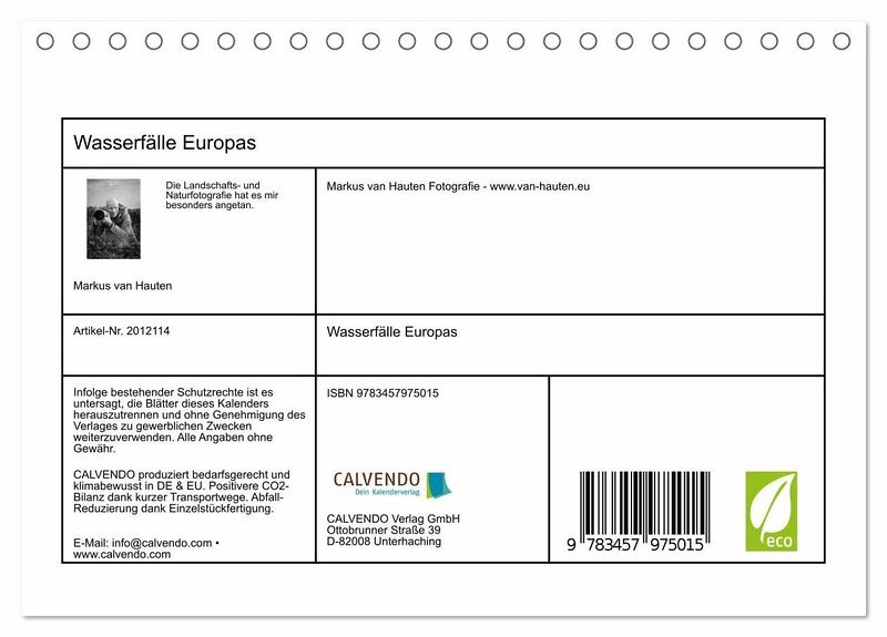 QUALITÄT - Hochwertiger Fotokalender mit 12 wunderschönen Motiven auf lichtbeständigem Bilderdruckpapier, robuste Spiralbindung.NACHHALTIG - deutliche Abfallreduzierung durch bedarfsgerechte Einzelstückfertigung, umweltfreundliches FSC-zertifiziertes Papier, Produktion in Deutschland, klimabewusste Logistik.PERFEKTES GESCHENK - Kalender für Freunde und Familie, für Kinder und Erwachsene, jung und alt, zu Weihnachten, Geburtstag oder zwischendurch.VIELFALT - Bildkalender in verschiedenen Formaten, z.B. DIN A5, DIN A4, DIN A3 sowie DIN A2. Ob Naturmotiv, Gemälde oder Fotos, ideal für ein persönliches Wohlfühlambiente.Eine kleine Auswahl europäischer Wasserfälle von Autor(in): Markus van Hauten