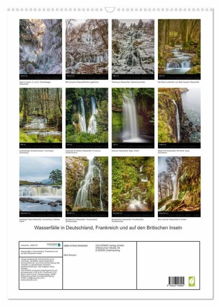 QUALITÄT - Hochwertiger Fotokalender mit 12 wunderschönen Motiven auf lichtbeständigem Bilderdruckpapier, robuste Spiralbindung mit Aufhängebügel.NACHHALTIG - deutliche Abfallreduzierung durch bedarfsgerechte Einzelstückfertigung, umweltfreundliches FSC-zertifiziertes Papier, Produktion in Deutschland, klimabewusste Logistik.PERFEKTES GESCHENK - Kalender für Freunde und Familie, für Kinder und Erwachsene, jung und alt, zu Weihnachten, Geburtstag oder zwischendurch.VIELFALT - Bildkalender in verschiedenen Formaten, z.B. DIN A5, DIN A4, DIN A3 sowie DIN A2. Ob Naturmotiv, Gemälde oder Fotos, ideal für ein persönliches Wohlfühlambiente.Wasserfälle in Deutschland, Frankreich und auf den Britischen Inseln von Autor(in): Mark Bangert