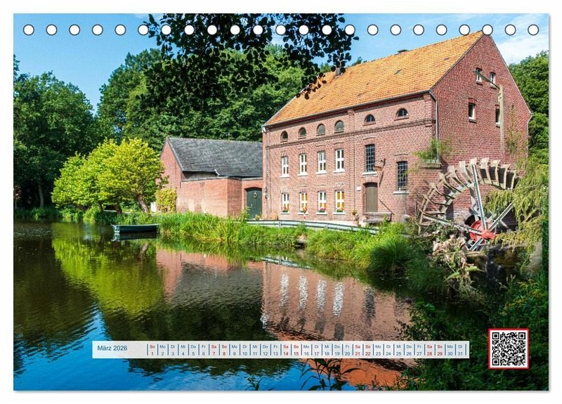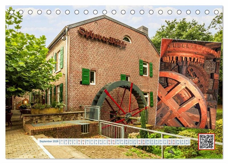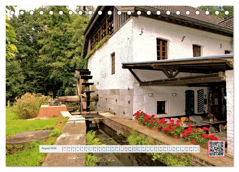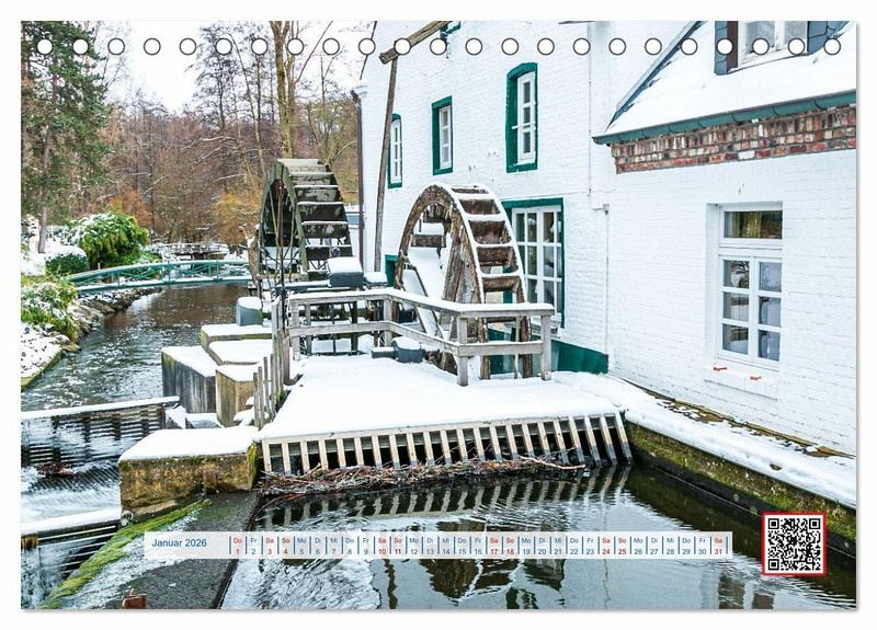 Februar: Schrof-Mühle in Wegberg, ca. 1558, funktionierendes Getreidemahlwerk und Ölpresse. Ab 2024 Sitz des Archivs des Rheinischen Mühlenverbandes.