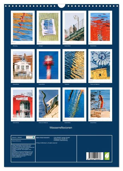 QUALITÄT - Hochwertiger Fotokalender mit 12 wunderschönen Motiven auf lichtbeständigem Bilderdruckpapier, robuste Spiralbindung mit Aufhängebügel.NACHHALTIG - deutliche Abfallreduzierung durch bedarfsgerechte Einzelstückfertigung, umweltfreundliches FSC-zertifiziertes Papier, Produktion in Deutschland, klimabewusste Logistik.PERFEKTES GESCHENK - Kalender für Freunde und Familie, für Kinder und Erwachsene, jung und alt, zu Weihnachten, Geburtstag oder zwischendurch.VIELFALT - Bildkalender in verschiedenen Formaten, z.B. DIN A5, DIN A4, DIN A3 sowie DIN A2. Ob Naturmotiv, Gemälde oder Fotos, ideal für ein persönliches Wohlfühlambiente.Farben und Strukturen, die durch das Zusammenspiel von Spiegelungen im Wasser und der Gestaltung durch Wind und Wellen entstehen von Autor(in): Klaus Kolfenbach