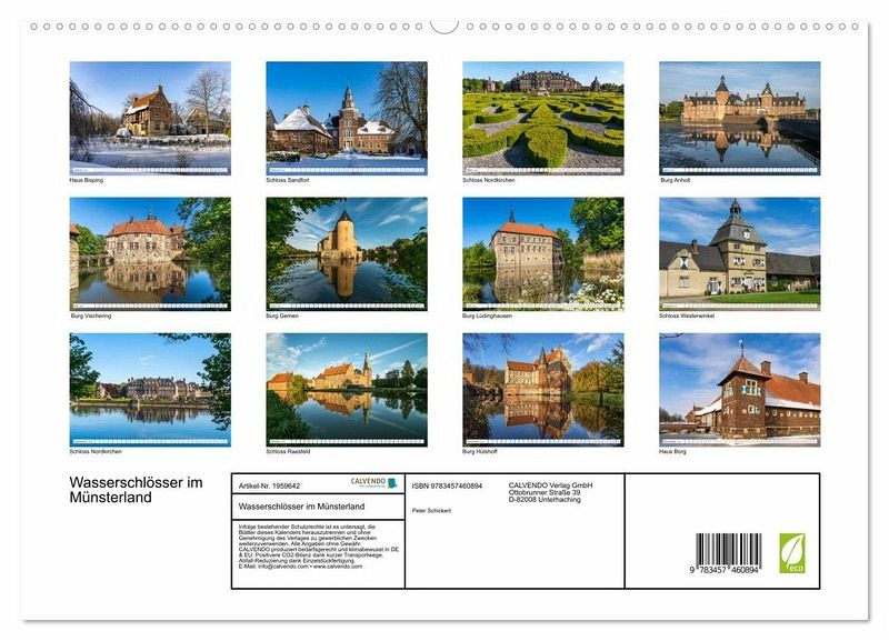 Dieser faszinierende farbenfrohe Kalender vom Reisefotografen Peter Schickert zeigt einige der schönsten Wasserschlösser im nordrhein-westfälischen Münsterland.