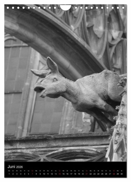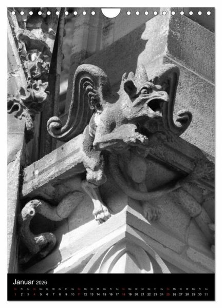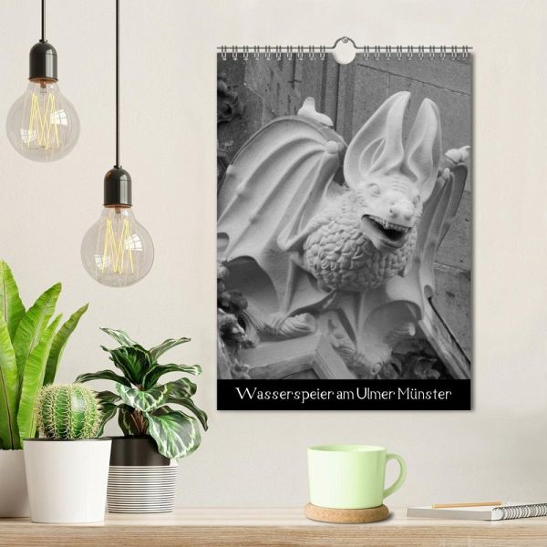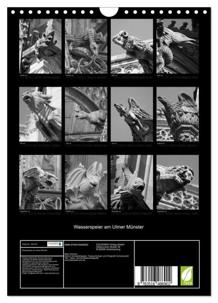 Das Ulmer Münster mit dem höchsten Kirchturm der Welt (161,53 Meter) ist fast jedem bekannt. Doch die Details dieser faszinierenden gotischen Kirche sind weniger geläufig. Das Ulmer Münster wird verziert von unzähligen Wasserspeiern, ähnlich wie Notre Dame in Paris. Die Steinfiguren stellen sowohl Tiere als auch dämonische Gestalten da. Dieser Kalender stellt Ihnen einen kleinen Ausschnitt dieser faszinierenden Wasserspeier dar, die von unten mit dem bloßem Auge kaum erkennbar sind. Er ist in Schwarz-Weiß gehalten.