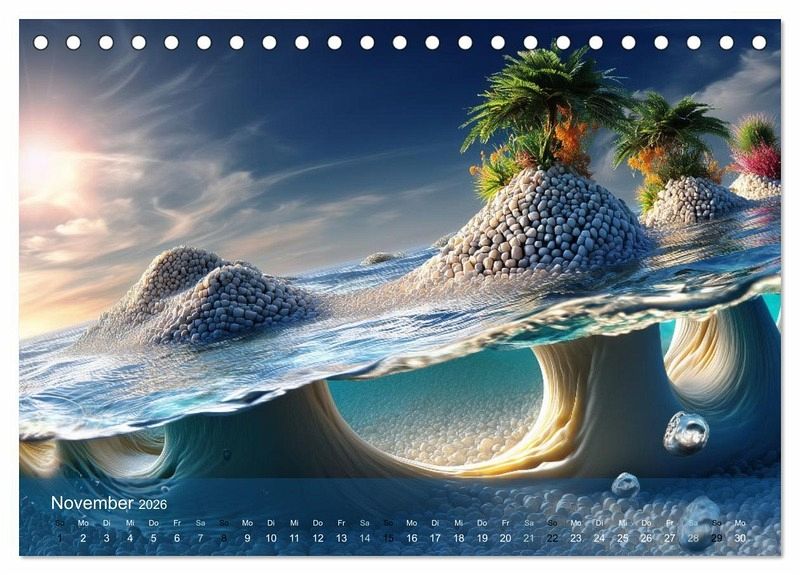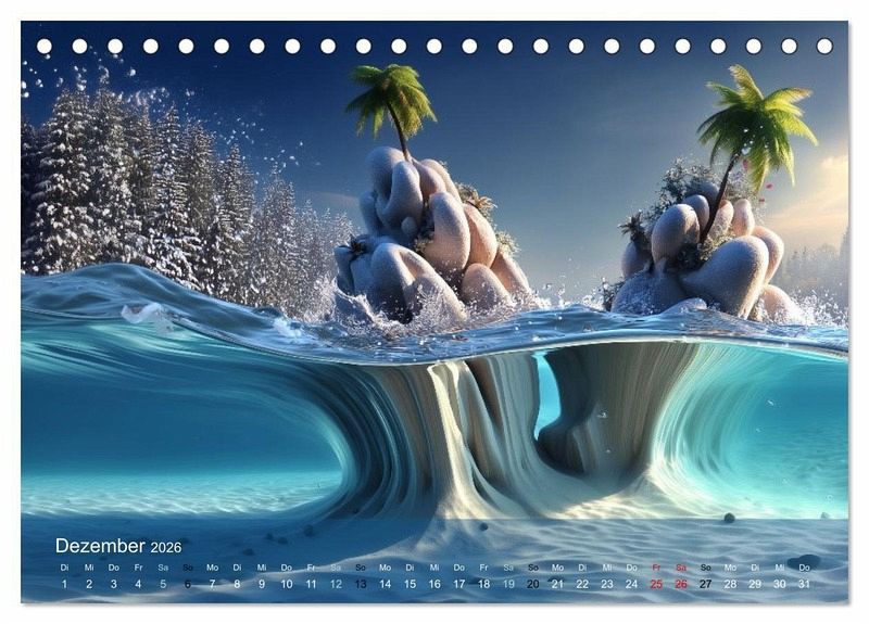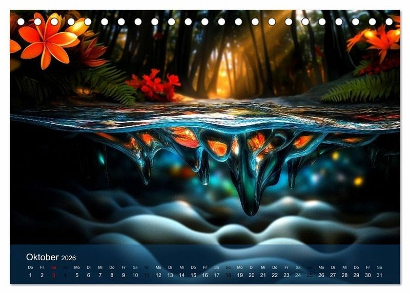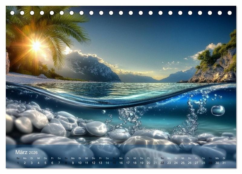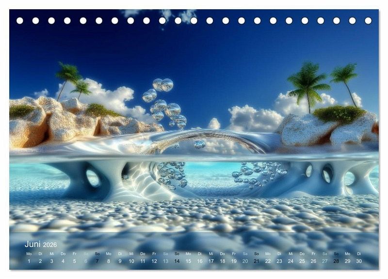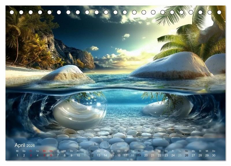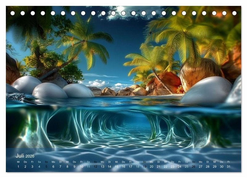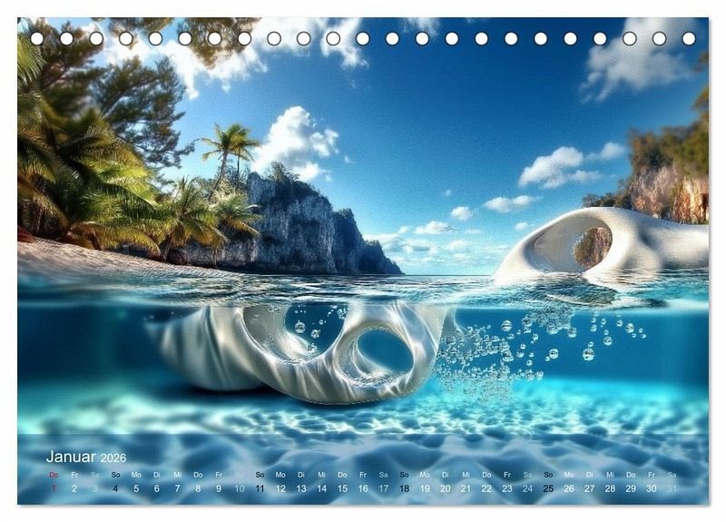 Erlebe das Unwirklich-Schöne - wo Fantasie auf Natur trifft. Der Blick unter die Wasseroberfläche. Tauche ein in eine Welt, in der die Wirklichkeit glitzert wie ein Traum. Wo das Meer smaragdgrün pulsiert, Wellen im Licht der Sterne tanzen und der Atem der Natur in jedem Windhauch spürbar wird. Am Horizont verschmilzt goldenes Sonnenlicht mit tropischer Wildnis - Palmen, Farne und leuchtende Blüten wiegen sich im Rhythmus der Stille. Unter der Wasseroberfläche öffnet sich ein neues Universum: tiefblau, geheimnisvoll, magisch. Hier ist jeder Augenblick ein Kunstwerk. Ein Ort zum Staunen, Atmen, Träumen. Alle Bilder wurden in mehreren Schritten mit Hilfe modernster KI-Technologie gestaltet.