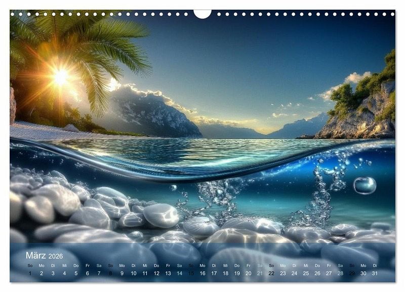 Erlebe das Unwirklich-Schöne - wo Fantasie auf Natur trifft. Der Blick unter die Wasseroberfläche. Tauche ein in eine Welt, in der die Wirklichkeit glitzert wie ein Traum. Wo das Meer smaragdgrün pulsiert, Wellen im Licht der Sterne tanzen und der Atem der Natur in jedem Windhauch spürbar wird. Am Horizont verschmilzt goldenes Sonnenlicht mit tropischer Wildnis - Palmen, Farne und leuchtende Blüten wiegen sich im Rhythmus der Stille. Unter der Wasseroberfläche öffnet sich ein neues Universum: tiefblau, geheimnisvoll, magisch. Hier ist jeder Augenblick ein Kunstwerk. Ein Ort zum Staunen, Atmen, Träumen. Alle Bilder wurden in mehreren Schritten mit Hilfe modernster KI-Technologie gestaltet.