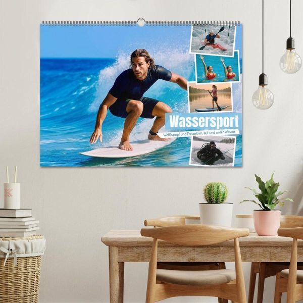 Ob im Ruderboot oder beim Kanuslalom, ob Surfen oder Kiten, ob Wasserball oder Schwimmen - wer Wassersport betreibt, hat immer Spaß und Action. Die verschiedenen Facetten des Wassersports zeigt Steffani Lehmann mit diesem abwechslungsreichen Kalender, dessen Bilder mit Unterstützung einer KI editiert wurden.