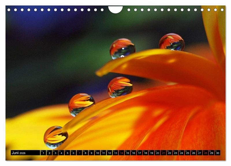 Wassertropfen, die Diamanten der Natur, unser kostbarstes Gut. Ein brilliantes Farbspektakel auf Blüten und Blättern, Tautropfen, Regentropfen, einzelne Wassertropfen mit Spiegelungen der Blumen- und Gartenwelt. Glasklar, lupenrein und bunt die Makrowelt der Fotografin Dagmar Laimgruber. Eine farbenfrohe, kleine Welt, ganz groß als Begleiter durch das Kalenderjahr.
