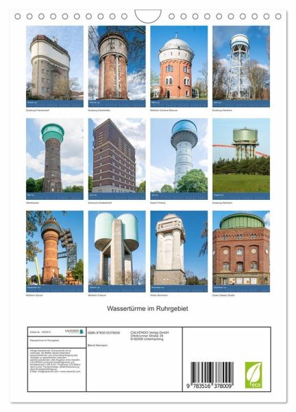 QUALITÄT - Hochwertiger Fotokalender mit 12 wunderschönen Motiven auf lichtbeständigem Bilderdruckpapier, robuste Spiralbindung mit Aufhängebügel.NACHHALTIG - deutliche Abfallreduzierung durch bedarfsgerechte Einzelstückfertigung, umweltfreundliches FSC-zertifiziertes Papier, Produktion in Deutschland, klimabewusste Logistik.PERFEKTES GESCHENK - Kalender für Freunde und Familie, für Kinder und Erwachsene, jung und alt, zu Weihnachten, Geburtstag oder zwischendurch.VIELFALT - Bildkalender in verschiedenen Formaten, z.B. DIN A5, DIN A4, DIN A3 sowie DIN A2. Ob Naturmotiv, Gemälde oder Fotos, ideal für ein persönliches Wohlfühlambiente.Wassertürme weithin sichtbare Landmarken von Autor(in): Bernd Hermann