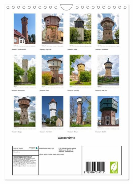 QUALITÄT - Hochwertiger Fotokalender mit 12 wunderschönen Motiven auf lichtbeständigem Bilderdruckpapier, robuste Spiralbindung mit Aufhängebügel.NACHHALTIG - deutliche Abfallreduzierung durch bedarfsgerechte Einzelstückfertigung, umweltfreundliches FSC-zertifiziertes Papier, Produktion in Deutschland, klimabewusste Logistik.PERFEKTES GESCHENK - Kalender für Freundeund Familie, für Kinder und Erwachsene, jung und alt, zu Weihnachten, Geburtstag oder zwischendurch.VIELFALT - Bildkalender in verschiedenen Formaten, z.B. DIN A5, DIN A4, DIN A3 sowie DIN A2. Ob Naturmotiv, Gemälde oder Fotos, ideal für ein persönliches Wohlfühlambiente.Ein Wasserturm dient dazu die umliegenden Gebäude und Flächen ausreichend mit Wasser zu versorgen. von Autor(in): Steffen Gierok ; Magik Artist Design