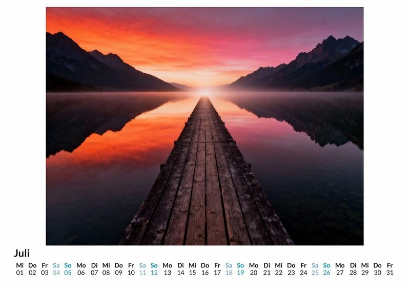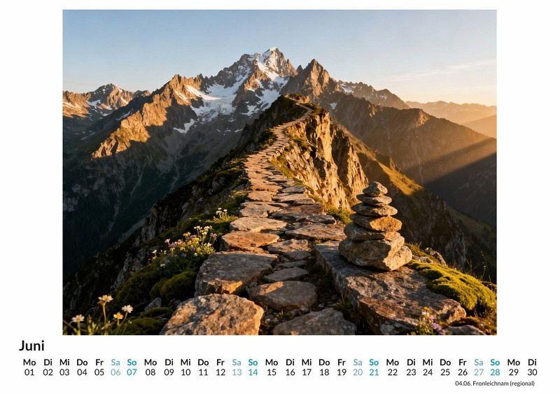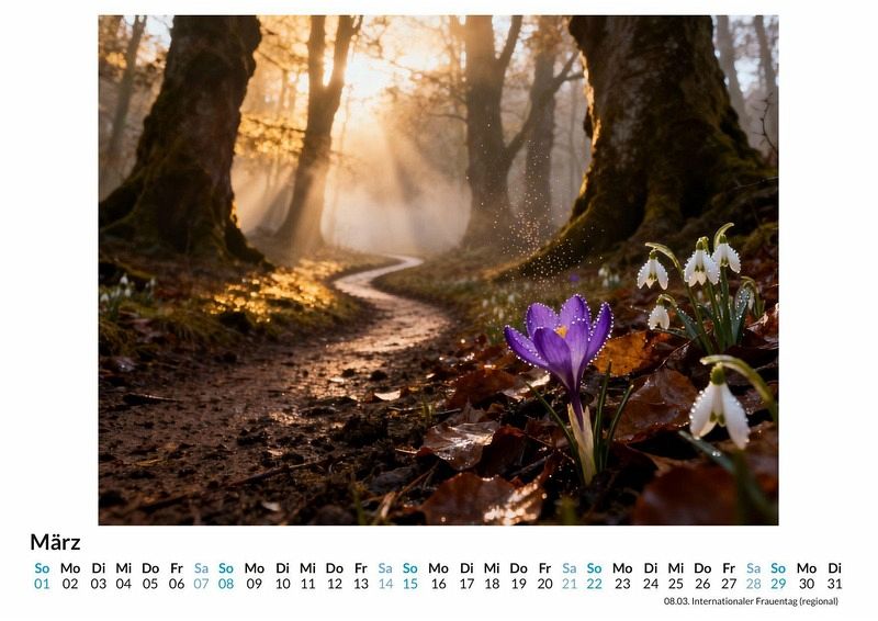 Ein Weg ist mehr als nur eine Verbindung zwischen zwei Orten. Er ist ein Versprechen, ein Symbol für den Lebenslauf, für getroffene Entscheidungen und für die unendliche Reise zu sich selbst. Er kann vertraut oder unbekannt sein, geradlinig oder verschlungen. Der Kalender ist optimal geeignet: Für alle, die die Stille und Schönheit der Natur schätzen. Für Menschen, die nach täglicher Inspiration und Momenten der Reflexion suchen. Für Liebhaber von ästhetischen und symbolträchtigen Bildwelten. Der Kalender "Wege durch die Natur" begleitet durch das Jahr mit zwölf eindrucksvollen Darstellungen von Pfaden, Wegen und Alleen. Jedes Monatsblatt fängt eine andere Stimmung ein und zeigt eine neue Facette dieser symbolischen Orte. Von sonnendurchfluteten Waldwegen, die Geborgenheit ausstrahlen, über geheimnisvolle, neblige Pfade, die zur inneren Einkehr anregen, bis hin zu majestätischen Alleen, die den Blick in die Ferne lenken. Jedes Bild ist das Ergebnis einer einzigartigen Synthese aus menschlicher Vision und digitaler Kreation und lädt dazu ein, über den eigenen Weg nachzudenken. Was der Kalender bietet: Zwölf Monatsmotive zum Thema Wege und Pfade. Ein übersichtliches Kalendarium für Termine und Notizen. Ein visueller Begleiter, der Monat für Monat neue Perspektiven eröffnet. Dieser Kalender ist mehr als nur ein Zeitmesser; er ist eine Einladung, die vielfältigen Wege des Lebens und der Natur zu betrachten. Jeder abgebildete Pfad erzählt eine eigene Geschichte von Aufbruch, Wandel oder Ankunft und regt die Fantasie an. Ein Blick auf die zwölf symbolischen Darstellungen lohnt sich, um Inspiration für die eigenen Schritte im kommenden Jahr zu finden.