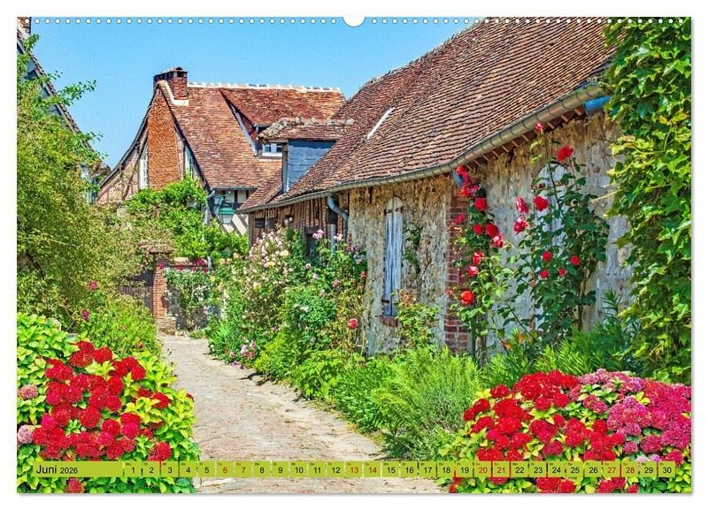 Juni: Von Blumen gesäumter Weg in Gerberoy, Frankreich.