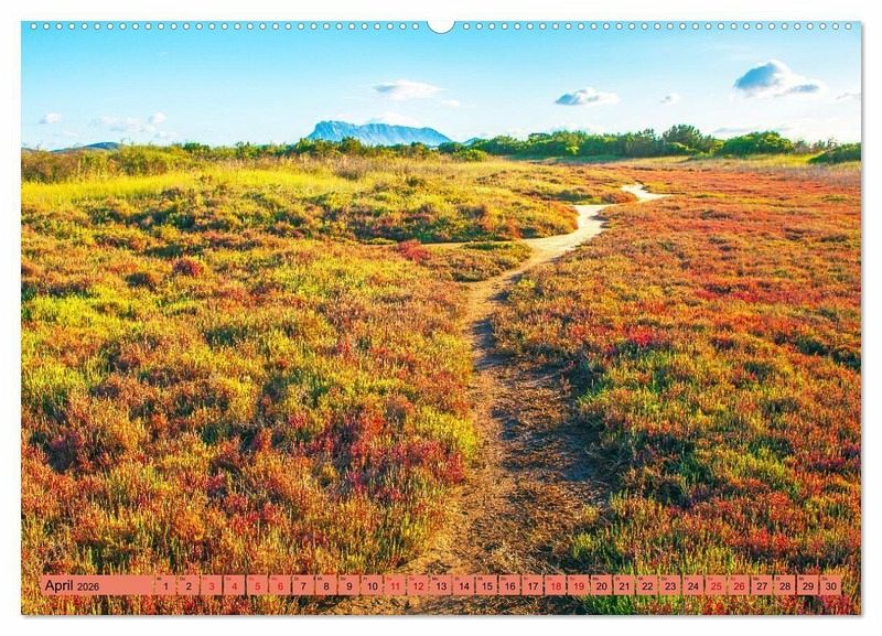 April: Pfad durch Salzwiesenpflanzen auf der Insel Sardinien.