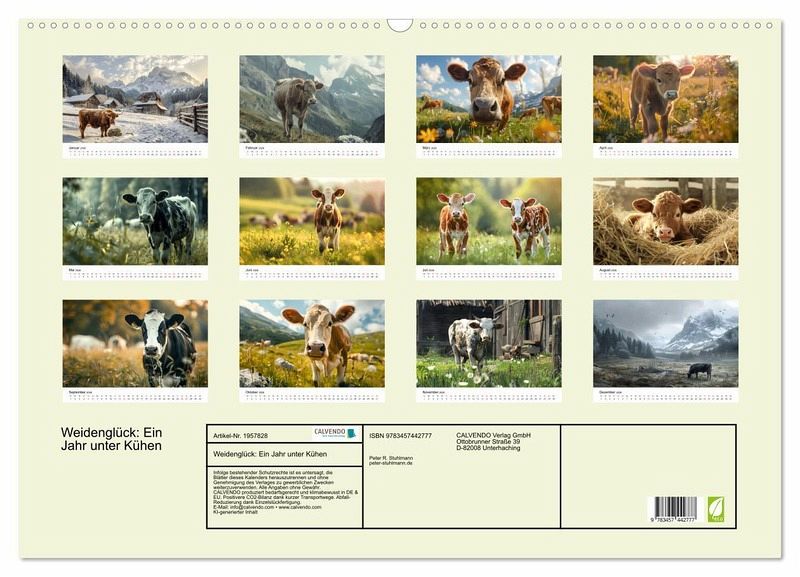 QUALITÄT - Hochwertiger Fotokalender mit 12 wunderschönen Motiven auf lichtbeständigem Bilderdruckpapier, robuste Spiralbindung mit Aufhängebügel.NACHHALTIG - deutliche Abfallreduzierung durch bedarfsgerechte Einzelstückfertigung, umweltfreundliches FSC-zertifiziertes Papier, Produktion in Deutschland, klimabewusste Logistik.PERFEKTES GESCHENK - Kalender für Freunde und Familie, für Kinder und Erwachsene, jung und alt, zu Weihnachten, Geburtstag oder zwischendurch.VIELFALT - Bildkalender in verschiedenen Formaten, z.B. DIN A5, DIN A4, DIN A3 sowie DIN A2. Ob Naturmotiv, Gemälde oder Fotos, ideal für ein persönliches Wohlfühlambiente.Ein bezaubernder Kalender, der die friedvolle Schönheit von Kühen einfängt. von Autor(in): Peter R. Stuhlmann