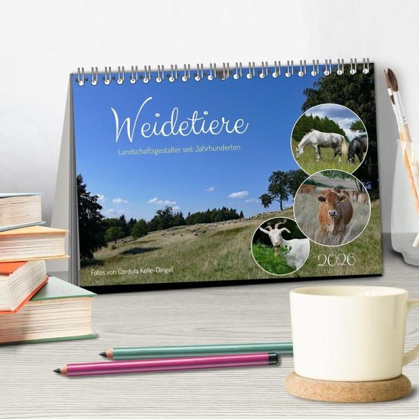 Weidetierhaltung ist die ursprünglichste Form der Nutztierhaltung, Hirt:innen mit ihren Tieren haben im Laufe der Jahrtausende unsere Landschaft gestaltet. Auch heute noch machen Rinder und Pferde, Schafe und Ziegen, Schweine und Gänse viele Flächen überhaupt erst nutzbar und liefern wertvolle Rohstoffe wie Fleisch, Milch, Wolle und Leder. Ihr Dung sorgt für fruchtbare Böden und Insektenvielfalt. So entstehen wertvolle Lebensräume. Eine Vielzahl an regionalen Rassen ermöglicht eine Nutzung sehr unterschiedlicher Standorte. Weidetierhaltung hat eine positive Wirkung auf Klima und Boden, für die biologische Vielfalt und das Tierwohl. Um die ökologischen Herausforderungen der Zukunft zu meistern, brauchen wir Weidetiere - und Menschen die sich täglich um sie kümmern. Hochwertiger Tischkalender zum Aufstellen mit 12 wunderschönen Bildern. Unsere Umwelt liegt uns am Herzen. Daher verwenden wir ausschließlich FSC-zertifizierte Papiere aus verantwortungsvoller Waldwirtschaft. Wir vermeiden Überproduktion und somit deutliche Abfallmengen, da wir bedarfsgerecht in Einzelfertigung in Deutschland (Made in Germany) produzieren. Wir halten unsere Transportwege kurz und sorgen für eine klimabewusste Logistik. 14 Seiten bestehend aus 1 Cover 12 Monatsseiten 1 Indexseite Papprücken mit Aufstellerfunktion. Abbildungen: Januar: Schafe können auch im Winter draußen weiden. Die Schäfer wanderten schon früher mit ihren Herden zu traditionellen Winterweiden. Februar: Robuste Rinderrassen wie Aubrac, Hochlandrinder oder Galloway können ebenfalls den Winter draußen verbringen. Sie müssen aber mit Heu oder Silage zugefüttert werden März: Witterungsempfindliche Tiere brauchen im Winter einen Stall mit Stroh und Heu. In der Landschaft findet man daher neben Weiden auch Mähwiesen und Getreidefelder. April: Viele Weidetierrassen sind gefärhdet, ohne Zucht und Nutzung würden sie verschwinden. Mai: In Norddeutschland ist die Beweidung oft die einzige Möglichkeit, um Deiche und Grünland zu pflegen.Die Lüneburger Heide wird durch Beweidung erhalten. Juni: Ziegen fressen gern dornige Sträucher, sie werden zur Offenhaltung wertvoller Biotope eingesetzt. Das Tierwohl liegt bei allen Weidetierarten in der Hand des Menschen. Juli: Im Alpenraum sichert die Beweidung den Erhalt der Almen und Alpen und erhält die Biodiversität August: Magerrasen und Trockenstandorte werden traditionell mit Schafen beweidet. Sie transpotieren in der Wolle Samen und Insekten und sorgen so für den Erhalt der Artenvielfalt September: Auf "Wilden Weiden" gestalten robuste Rassen wie Heckrinder, Konikpferde oder Exmoorponies auf Naturschutzflächen ganzjährig die Landschaft. Oktober: Der Dung von Weidetieren ist wichtiger Lebensraum für Insekten. Insekten locken Vögel an. Weideflächen sind Hotspots der Biodiversität. November: Auch Esel können zur Beweidung eingesetzte werden, sie benötigen karge Kost. Auch Lamas und Alpakas eignen sich zur Landschaftspflege auf geeigneten Standorten Dezember: Weidetiere werden in Gruppen gehalten, dies ermöglicht ihnen, ihr artspezifisches Sozialverhalten ausüben zu können QUALITÄT - Hochwertiger Fotokalender mit 12 wunderschönen Motiven auf lichtbeständigem Bilderdruckpapier, robuste Spiralbindung. NACHHALTIG - deutliche Abfallreduzierung durch bedarfsgerechte Einzelstückfertigung, umweltfreundliches FSC-zertifiziertes Papier, Produktion in Deutschland, klimabewusste Logistik. PERFEKTES GESCHENK - Kalender für Freunde und Familie, für Kinder und Erwachsene, jung und alt, zu Weihnachten, Geburtstag oder zwischendurch. VIELFALT - Bildkalender in verschiedenen Formaten, z.B. DIN A5, DIN A4, DIN A3 sowie DIN A2. Ob Naturmotiv, Gemälde oder Fotos, ideal für ein persönliches Wohlfühlambiente. Verschiedene Weidetierarten auf regional unterschiedlichen Weideflächen zeigen anschaulich die ökologische Bedeutung dieser Art der Flächennutzung von A