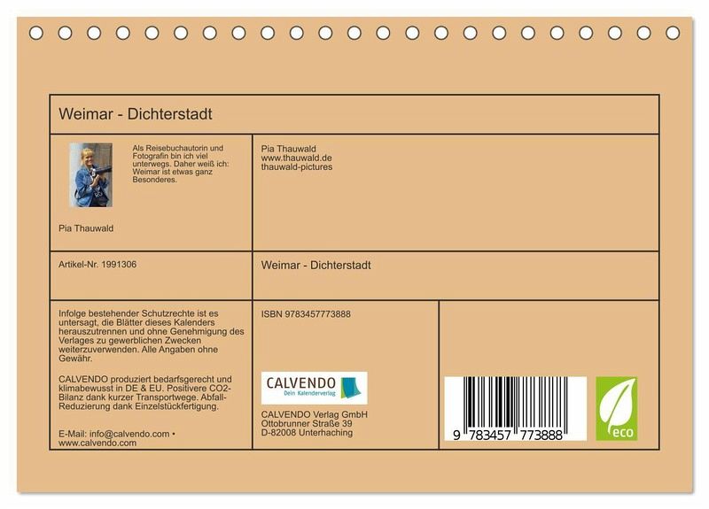 QUALITÄT - Hochwertiger Fotokalender mit 12 wunderschönen Motiven auf lichtbeständigem Bilderdruckpapier, robuste Spiralbindung.NACHHALTIG - deutliche Abfallreduzierung durch bedarfsgerechte Einzelstückfertigung, umweltfreundliches FSC-zertifiziertes Papier, Produktion in Deutschland, klimabewusste Logistik.PERFEKTES GESCHENK - Kalender für Freunde und Familie, für Kinder und Erwachsene, jung und alt, zu Weihnachten, Geburtstag oder zwischendurch.VIELFALT - Bildkalender in verschiedenen Formaten, z.B. DIN A5, DIN A4, DIN A3 sowie DIN A2. Ob Naturmotiv, Gemälde oder Fotos, ideal für ein persönliches Wohlfühlambiente.Die viertgrößte Stadt Thüringens ist von großer kulturhistorischer Bedeutung; viele schlaue Köpfe prägten nicht nur die Stadt sondern auch die kulturelle Identität. von Autor(in): Pia Thauwald