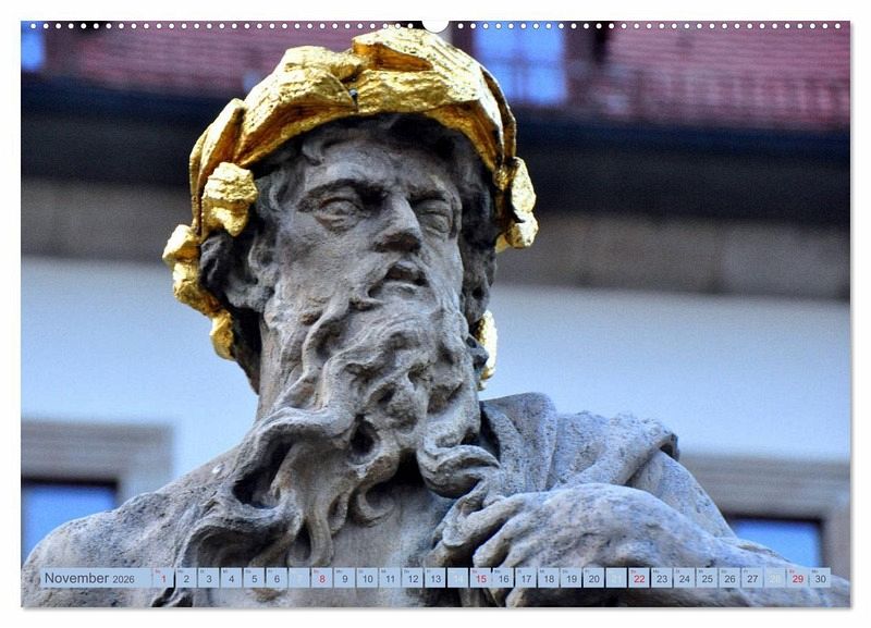 November: Neptunskulptur des gleichnamigen Brunnens am Markt