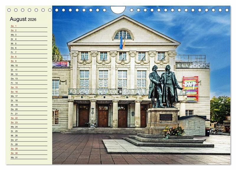 Weimar, zweifellos eine der schönsten Städte Thüringens in 13 wunderschönen Bildern festgehalten. Begleiten Sie die Fotografin Sigrid Starick auf Goethes und Schillers Pfaden ein Jahr lang durch diese bezaubernde Stadt, die zu Recht den Status UNESCO-Welterbe trägt. Besonders geprägt ist Weimar vom Baustil des Klassizismus.