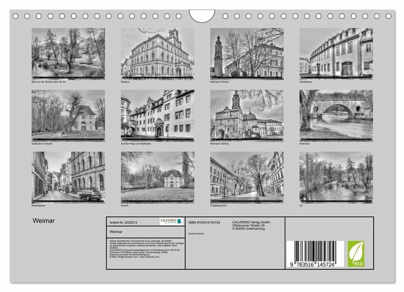 QUALITÄT - Hochwertiger Fotokalender mit 12 wunderschönen Motiven auf lichtbeständigem Bilderdruckpapier, robuste Spiralbindung mit Aufhängebügel.NACHHALTIG - deutliche Abfallreduzierung durch bedarfsgerechte Einzelstückfertigung, umweltfreundliches FSC-zertifiziertes Papier, Produktion in Deutschland, klimabewusste Logistik.PERFEKTES GESCHENK - Kalender für Freunde und Familie, für Kinder und Erwachsene, jung und alt, zu Weihnachten, Geburtstag oder zwischendurch.VIELFALT - Bildkalender in verschiedenen Formaten, z.B. DIN A5, DIN A4, DIN A3 sowie DIN A2. Ob Naturmotiv, Gemälde oder Fotos, ideal für ein persönliches Wohlfühlambiente.Eine etwas andereSicht auf Weimar - Einblicke wie gezeichnet von Autor(in): Daniela Scholz