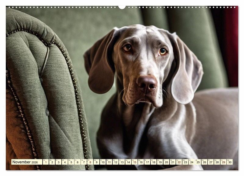 Der Weimaraner gilt als die älteste deutsche Vorstehhunderasse und ist bis heute ein vielseitiger Jagdgebrauchshund. Doch der Aristokrat unter den Hunden mit dem silbrig glänzenden Fell und dem stolzen Ausdruck wird auch bei Nicht-Jägern zunehmend beliebter. Als Familienhund eignet er sich allerdings nur, wenn er ausreichend beschäftigt und bewegt wird. Besonders ist das in der Hundewelt seltene, silbergrau schimmernde Fell und die , bernsteinbraunen Augen. Mit seiner schlanken, muskulösen und harmonischen Gestalt, der stolzen Haltung und dem wohlgeformten Kopf mit den langen Schlappohren verkörpert der Weimaraner den perfekten Typ des edlen Jagdhundes. Mithilfe der KI wurde dieser einzigartige Jagdhund in Szene gesetzt.