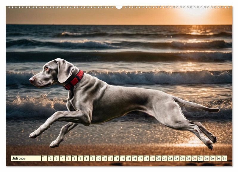Der Weimaraner gilt als die älteste deutsche Vorstehhunderasse und ist bis heute ein vielseitiger Jagdgebrauchshund. Doch der Aristokrat unter den Hunden mit dem silbrig glänzenden Fell und dem stolzen Ausdruck wird auch bei Nicht-Jägern zunehmend beliebter. Als Familienhund eignet er sich allerdings nur, wenn er ausreichend beschäftigt und bewegt wird. Besonders ist das in der Hundewelt seltene, silbergrau schimmernde Fell und die , bernsteinbraunen Augen. Mit seiner schlanken, muskulösen und harmonischen Gestalt, der stolzen Haltung und dem wohlgeformten Kopf mit den langen Schlappohren verkörpert der Weimaraner den perfekten Typ des edlen Jagdhundes. Mithilfe der KI wurde dieser einzigartige Jagdhund in Szene gesetzt.