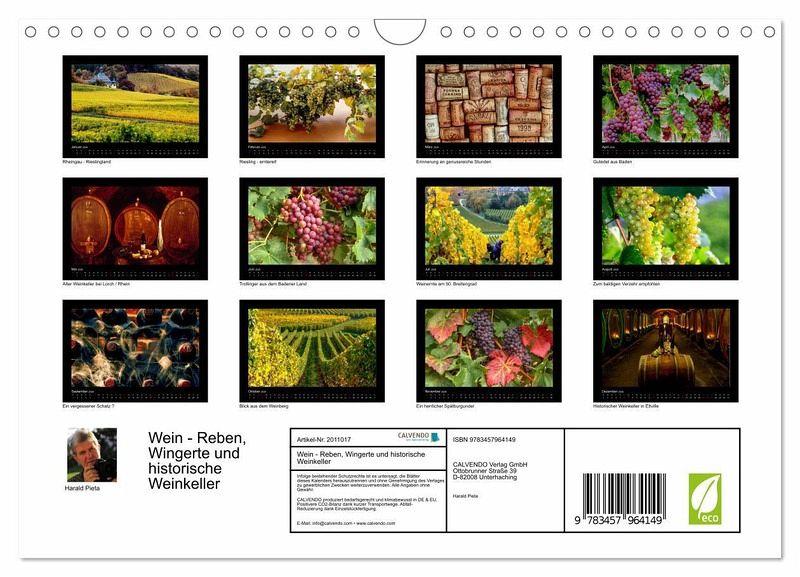 QUALITÄT - Hochwertiger Fotokalender mit 12 wunderschönen Motiven auf lichtbeständigem Bilderdruckpapier, robuste Spiralbindung mit Aufhängebügel.NACHHALTIG - deutliche Abfallreduzierung durch bedarfsgerechte Einzelstückfertigung, umweltfreundliches FSC-zertifiziertes Papier, Produktion in Deutschland, klimabewusste Logistik.PERFEKTES GESCHENK - Kalender für Freunde und Familie, für Kinder und Erwachsene, jung und alt,zu Weihnachten, Geburtstag oder zwischendurch.VIELFALT - Bildkalender in verschiedenen Formaten, z.B. DIN A5, DIN A4, DIN A3 sowie DIN A2. Ob Naturmotiv, Gemälde oder Fotos, ideal für ein persönliches Wohlfühlambiente.Herrliche Weinlandschaften, Historische Weinkeller, edle Weine von Autor(in): Harald Pieta