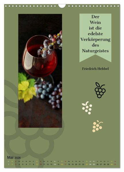 QUALITÄT - Hochwertiger Fotokalender mit 12 wunderschönen Motiven auf lichtbeständigem Bilderdruckpapier, robuste Spiralbindung mit Aufhängebügel.NACHHALTIG - deutliche Abfallreduzierung durch bedarfsgerechte Einzelstückfertigung, umweltfreundliches FSC-zertifiziertes Papier, Produktion in Deutschland, klimabewusste Logistik.PERFEKTES GESCHENK - Kalender für Freunde und Familie, für Kinder und Erwachsene, jung und alt, zu Weihnachten, Geburtstag oder zwischendurch.VIELFALT - Bildkalender in verschiedenen Formaten, z.B. DIN A5, DIN A4, DIN A3 sowie DIN A2. Ob Naturmotiv, Gemälde oder Fotos, ideal für ein persönliches Wohlfühlambiente.Wein muss Sein! Wein ist Genuss und Kultur! von Autor(in): Susan Michel