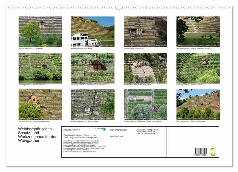 QUALITÄT - Hochwertiger Fotokalender mit 12 wunderschönen Motiven auf lichtbeständigem Bilderdruckpapier, robuste Spiralbindung mit Aufhängebügel.NACHHALTIG - deutliche Abfallreduzierung durch bedarfsgerechte Einzelstückfertigung, umweltfreundliches FSC-zertifiziertes Papier, Produktion in Deutschland, klimabewusste Logistik.PERFEKTES GESCHENK - Kalender für Freunde und Familie, für Kinder und Erwachsene, jung und alt, zu Weihnachten, Geburtstag oder zwischendurch.VIELFALT - Bildkalender in verschiedenen Formaten, z.B. DIN A5, DIN A4, DIN A3 sowie DIN A2. Ob Naturmotiv, Gemälde oder Fotos, ideal für ein persönliches Wohlfühlambiente.Ein Weinberghaus oder Weinberghäuschen ist im Weinberg ein kleines Gebäude. von Autor(in): Hanns-Peter Eisold