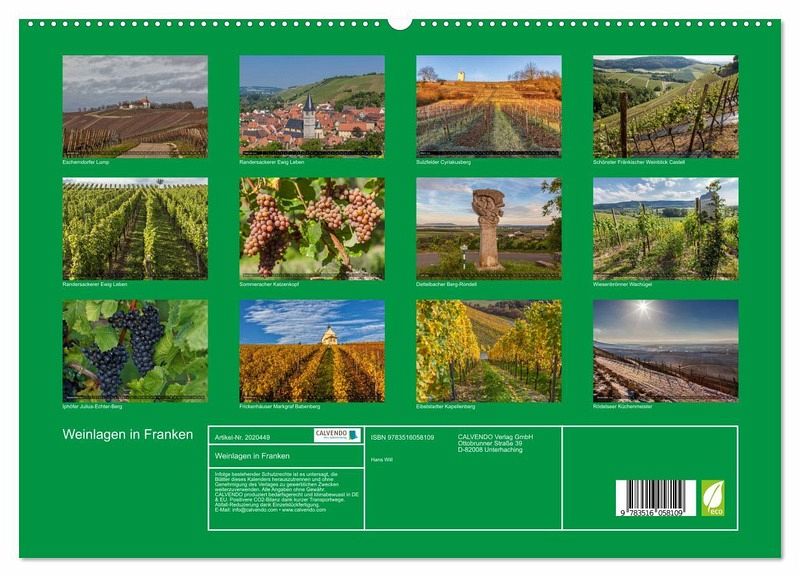 PREMIUM-LINIE - Brillanter Fotokalender mit 12 wunderschönen Motiven, Kunstdruck in Hochglanz in Museumsqualität.QUALITÄT - edle Materialien, stabile Rückwand mit 2 innovativen Einstecktaschen für eine optimale Präsentation an der Wand.NACHHALTIG - deutliche Abfallreduzierung durch bedarfsgerechte Einzelstückfertigung, umweltfreundliches FSC-zertifiziertes Papier, Produktion in Deutschland, klimabewusste Logistik.PERFEKTES GESCHENK - Kalender für Freunde und Familie, für Kinder und Erwachsene, jung und alt, zu Weihnachten, Geburtstag oder zwischendurch.Bekannte Weinlagen aus Franken im Bild von Autor(in): Haenson