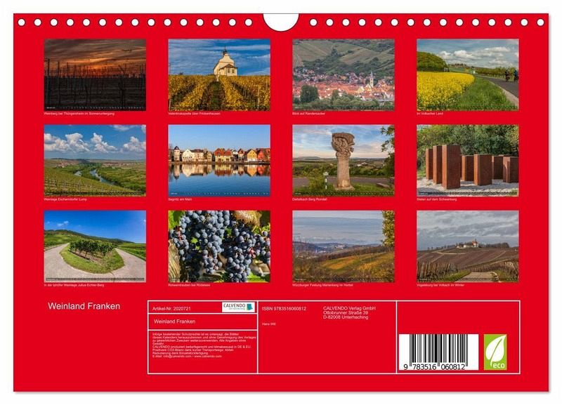 hes FSC-zertifiziertes Papier, Produktion in Deutschland, klimabewusste Logistik.PERFEKTES GESCHENK - Kalender für Freunde und Familie, für Kinder und Erwachsene, jung und alt, zu Weihnachten, Geburtstag oder zwischendurch.VIELFALT - Bildkalender in verschiedenen Formaten, z.B. DIN A5, DIN A4, DIN A3 sowie DIN A2. Ob Naturmotiv, Gemälde oder Fotos, ideal für ein persönliches Wohlfühlambiente.Das Fränkische Weinland liegt am Maindreieck - umrahmt vom Spessart, der Rhön, dem Steigerwald und dem lieblichen Taubertal. von Autor(in): Haenson