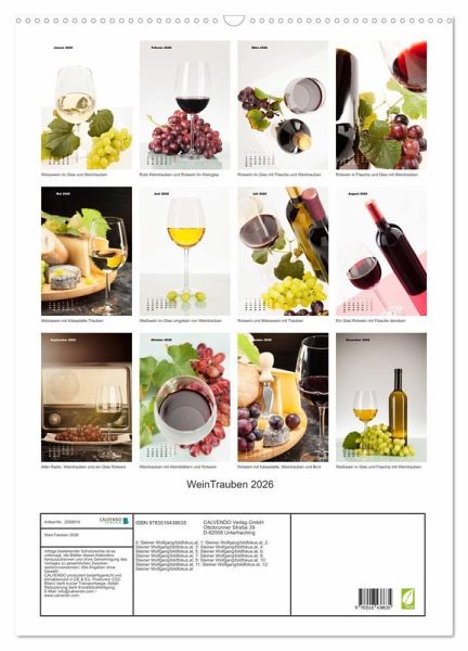 QUALITÄT - Hochwertiger Fotokalender mit 12 wunderschönen Motiven auf lichtbeständigem Bilderdruckpapier, robuste Spiralbindung mit Aufhängebügel.NACHHALTIG - deutliche Abfallreduzierung durch bedarfsgerechte Einzelstückfertigung, umweltfreundliches FSC-zertifiziertes Papier, Produktion in Deutschland, klimabewusste Logistik.PERFEKTES GESCHENK - Kalender für Freunde und Familie, für Kinder und Erwachsene, jung und alt, zu Weihnachten, Geburtstag oder zwischendurch.VIELFALT - Bildkalender in verschiedenen Formaten, z.B. DIN A5, DIN A4, DIN A3 sowie DIN A2. Ob Naturmotiv, Gemälde oder Fotos, ideal für ein persönliches Wohlfühlambiente.Wein und Weintrauben von Autor(in): Wolfgang Steiner