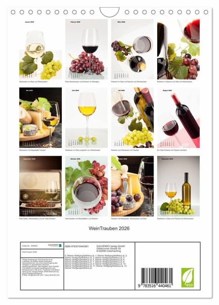 QUALITÄT - Hochwertiger Fotokalender mit 12 wunderschönen Motiven auf lichtbeständigem Bilderdruckpapier, robuste Spiralbindung mit Aufhängebügel.NACHHALTIG - deutliche Abfallreduzierung durch bedarfsgerechte Einzelstückfertigung, umweltfreundliches FSC-zertifiziertes Papier, Produktion in Deutschland, klimabewusste Logistik.PERFEKTES GESCHENK - Kalender für Freunde und Familie, für Kinder und Erwachsene, jung und alt, zu Weihnachten, Geburtstag oder zwischendurch.VIELFALT - Bildkalender in verschiedenen Formaten, z.B. DIN A5, DIN A4, DIN A3 sowie DIN A2. Ob Naturmotiv, Gemälde oder Fotos, ideal für ein persönliches Wohlfühlambiente.Wein und Weintrauben von Autor(in): Wolfgang Steiner