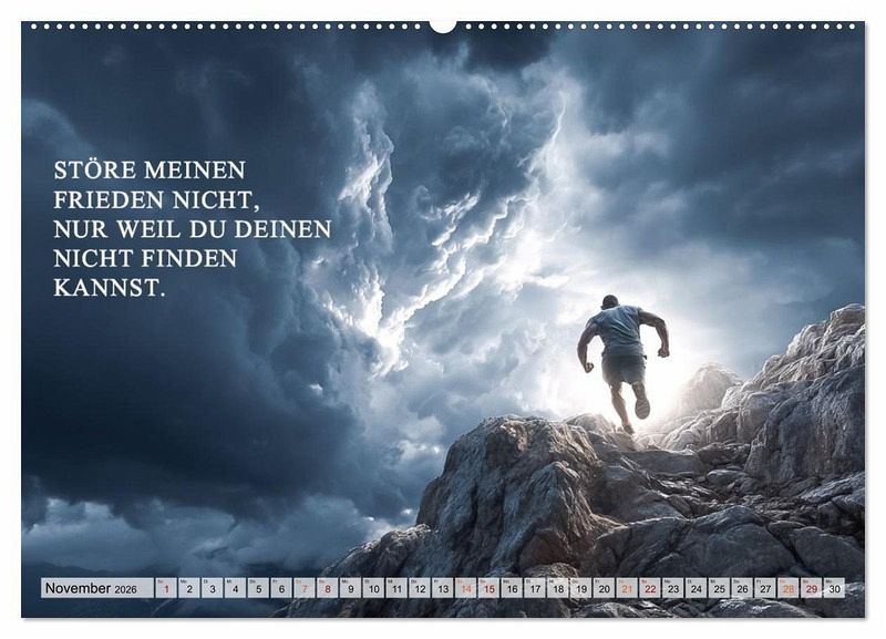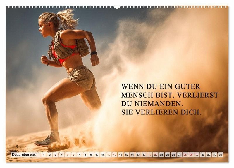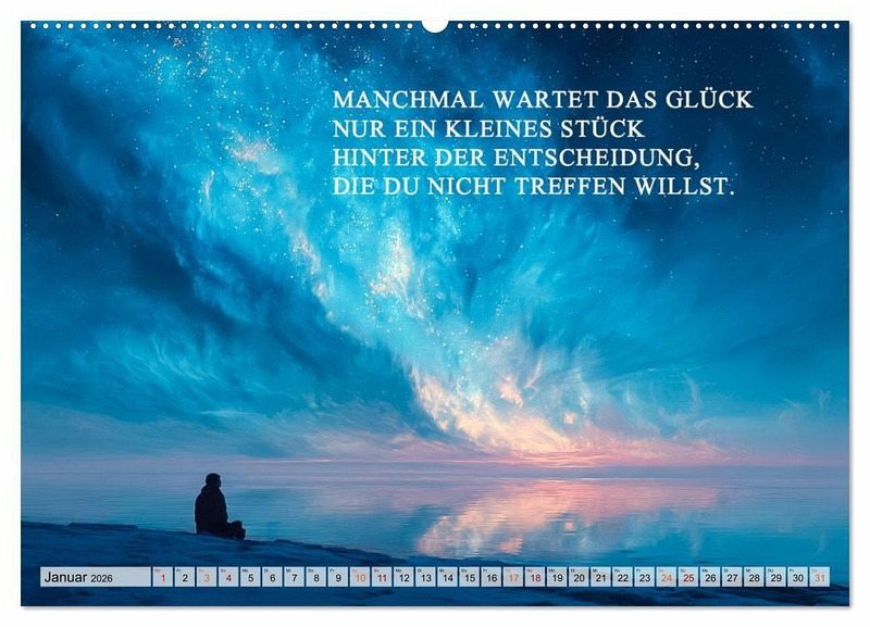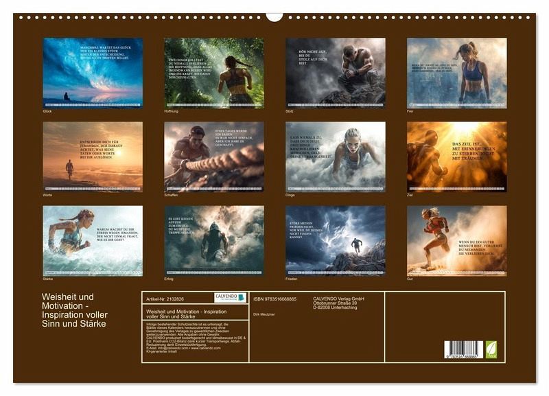 Dieser Wandkalender begleitet dich mit 12 kraftvollen Illustrationen und tiefgehenden Zitaten, erstellt wurde er mit KI und Photoshop. Jeder Monat schenkt dir neue Energie, Klarheit und Motivation, für ein Leben mit Haltung, Herz und Richtung. Ideal für alle, die an sich glauben, ihren Weg gehen und sich nicht verbiegen lassen. Ein Kalender, der bewegt, außen und innen.