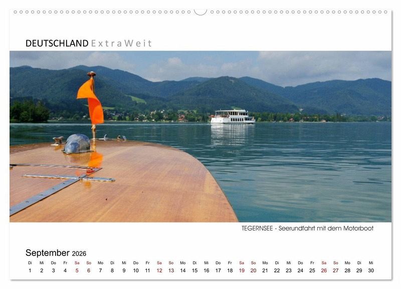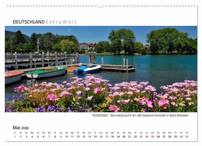 Umrahmt von den Tegernseer Alpen liegt einer der schönsten Sees Bayerns. Neben der malerischen Landschaft bietet der See auch sportliche Betätigungsmöglichkeiten wie segeln, baden, radeln und wandern. Außerdem ist eine Schifffahrt über den Tegernsee ein unvergessliches Erlebnis. In der Kalenderserie von Dieter Wilczek "DEUTSCHLAND Extra Weit" zeigt der Erlebnisfotograf die faszinierenden Landschaften Deutschlands in besonders ausdrucksstarken Panoramabildern. Wie seine Aufnahmen belegen, hat jede Jahreszeit ihren ganz eigenen unwiderstehlichen Charme: Mystisch im Winterkleid, farbenprächtig im Herbst und prachtvoll bei Kaiserwetter im Sommer...