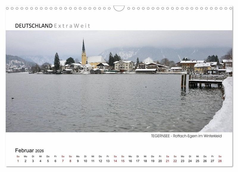 Umrahmt von den Tegernseer Alpen liegt einer der schönsten Sees Bayerns. Neben der malerischen Landschaft bietet der See auch sportliche Betätigungsmöglichkeiten wie segeln, baden, radeln und wandern. Außerdem ist eine Schifffahrt über den Tegernsee ein unvergessliches Erlebnis. In der Kalenderserie von Dieter Wilczek "DEUTSCHLAND Extra Weit" zeigt der Erlebnisfotograf die faszinierenden Landschaften Deutschlands in besonders ausdrucksstarken Panoramabildern. Wie seine Aufnahmen belegen, hat jede Jahreszeit ihren ganz eigenen unwiderstehlichen Charme: Mystisch im Winterkleid, farbenprächtig im Herbst und prachtvoll bei Kaiserwetter im Sommer...