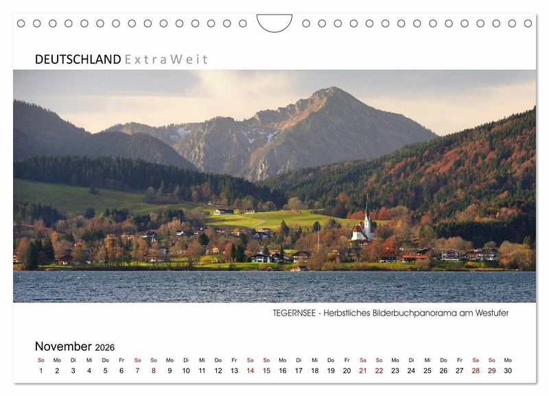 Umrahmt von den Tegernseer Alpen liegt einer der schönsten Sees Bayerns. Neben der malerischen Landschaft bietet der See auch sportliche Betätigungsmöglichkeiten wie segeln, baden, radeln und wandern. Außerdem ist eine Schifffahrt über den Tegernsee ein unvergessliches Erlebnis. In der Kalenderserie von Dieter Wilczek "DEUTSCHLAND Extra Weit" zeigt der Erlebnisfotograf die faszinierenden Landschaften Deutschlands in besonders ausdrucksstarken Panoramabildern. Wie seine Aufnahmen belegen, hat jede Jahreszeit ihren ganz eigenen unwiderstehlichen Charme: Mystisch im Winterkleid, farbenprächtig im Herbst und prachtvoll bei Kaiserwetter im Sommer...