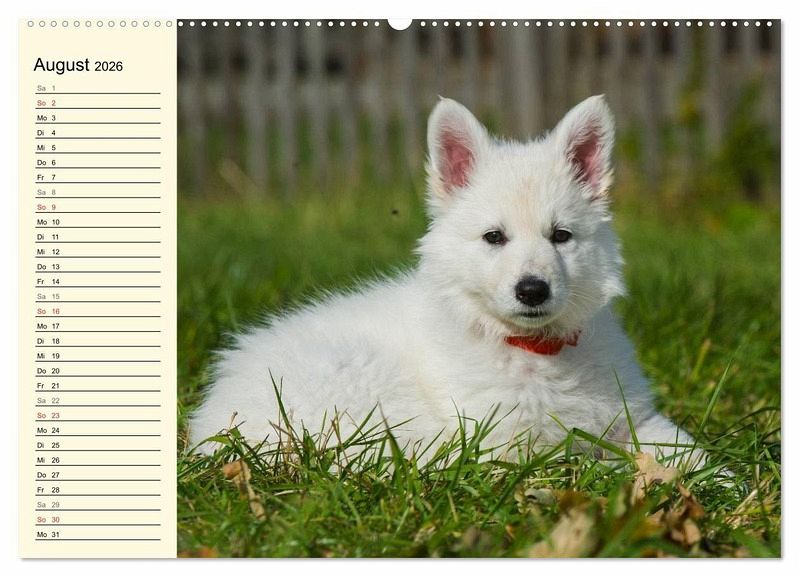 Auf 13 Kalenderblättern zeigt die Tierfotografin Sigrid Starick wunderschöne Weiße Schweizer Schäferhunde. Einen Tag lang hat sie eine ganze Hundefamilie mit ihrer Kamera beobachtet. Lassen Sie sich über das Jahr faszinieren von hinreißenden Welpen und ihren Eltern.